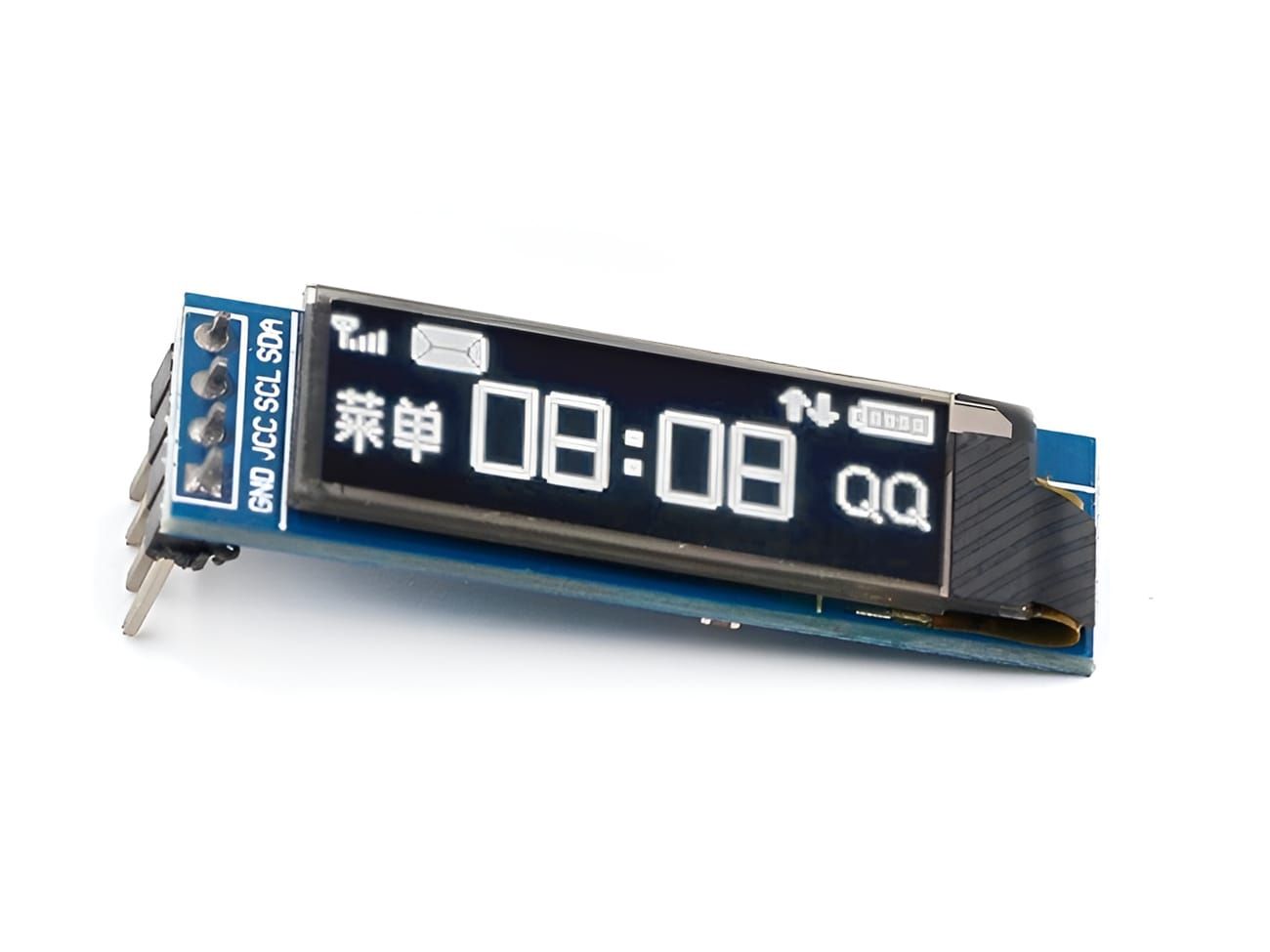 The 0.91-inch 128x32 OLED display is a compact, monochrome display module with a resolution of 128x32 it is commonly used in various electronic devices due to its high contrast ratio, wide viewing angles, and low power consumption.