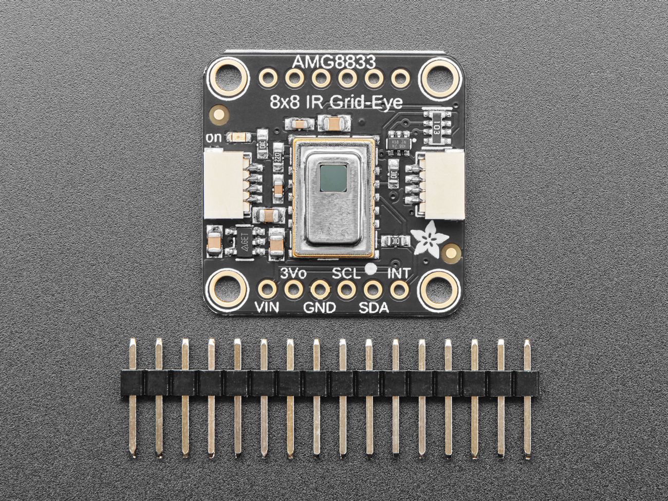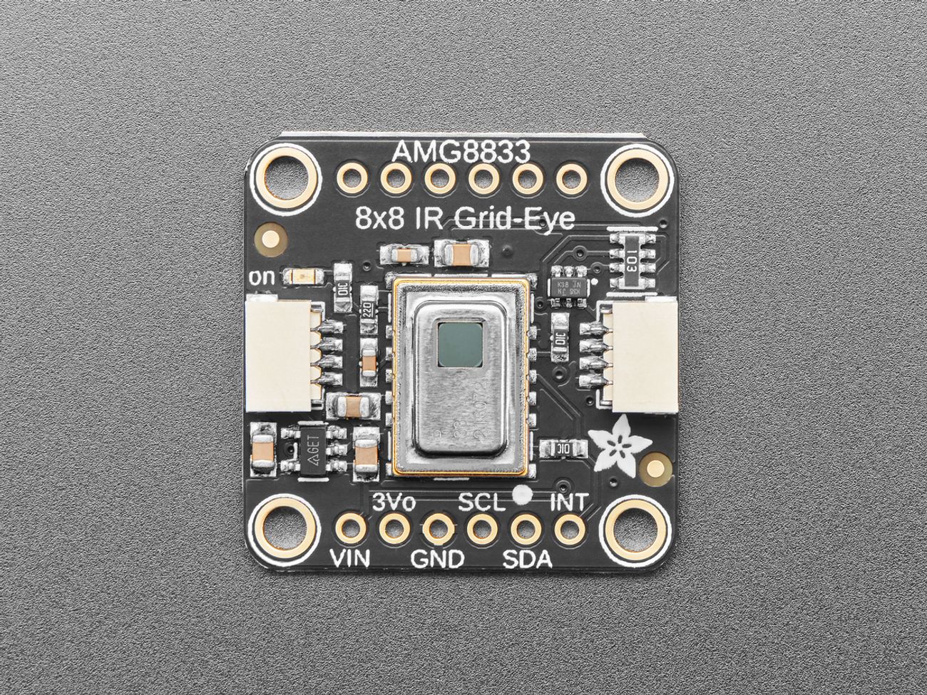 Adafruit AMG8833 IR Thermal Camera Breakout is based on Panasonic’s Grid-EYE sensor and provides an 8x8 array of infrared thermal pixels for non-contact temperature sensing. Over I2C, it returns 64 individual temperature readings that can be used to detect heat patterns, build a simple presence detector, or create a mini thermal camera.