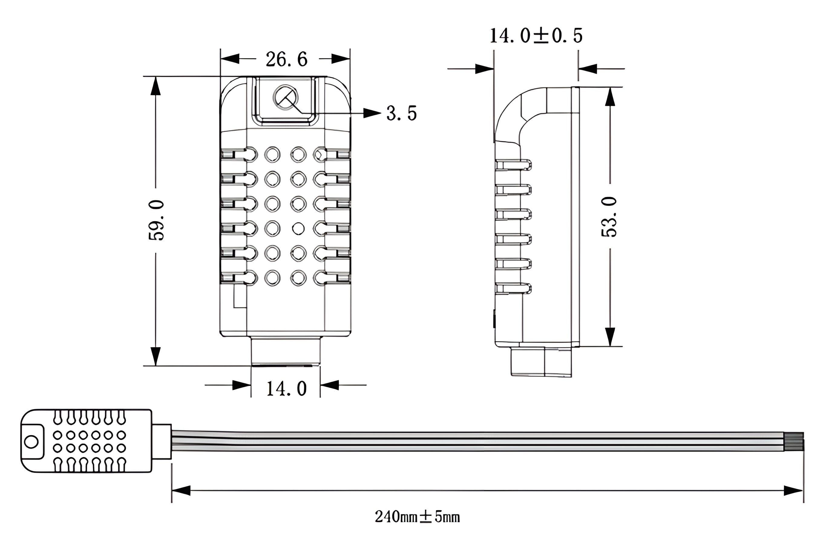 The AM2301B is a high-precision digital temperature and humidity sensor with an operating voltage of 2.2 to 5.5V DC. It can measure temperature from -40°C to +80°C with an accuracy of ±0.3°C at 25°C and a resolution of 0.01°C.