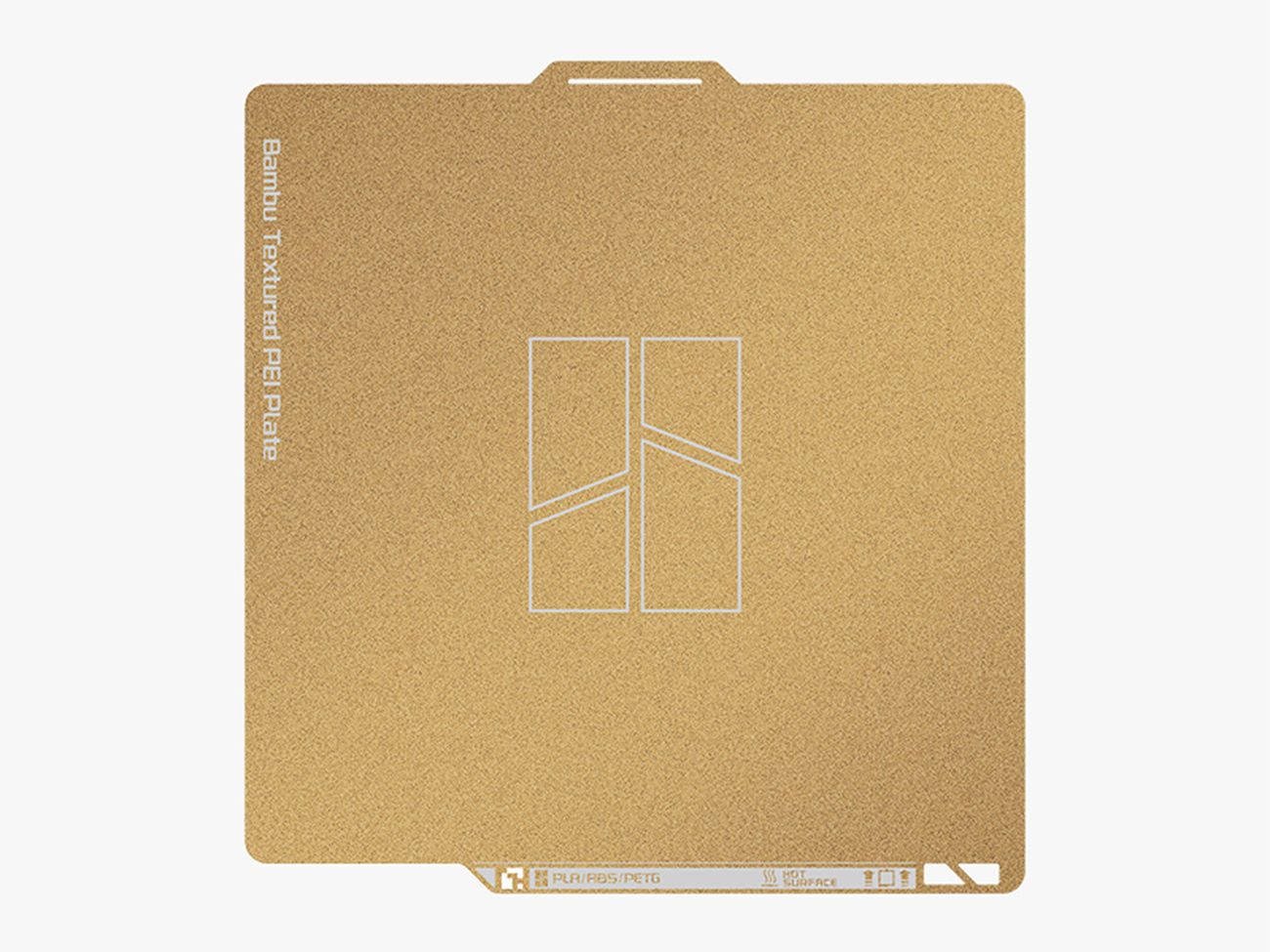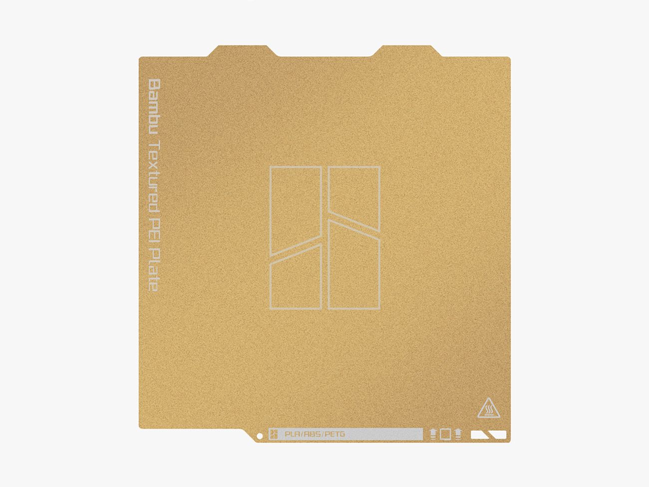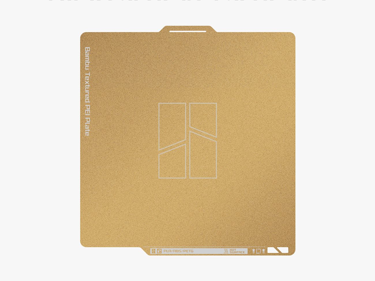 The Bambu Lab Textured PEI Build Plate delivers strong first-layer adhesion with a dual-sided powder-coated PEI surface for consistent and reliable prints.