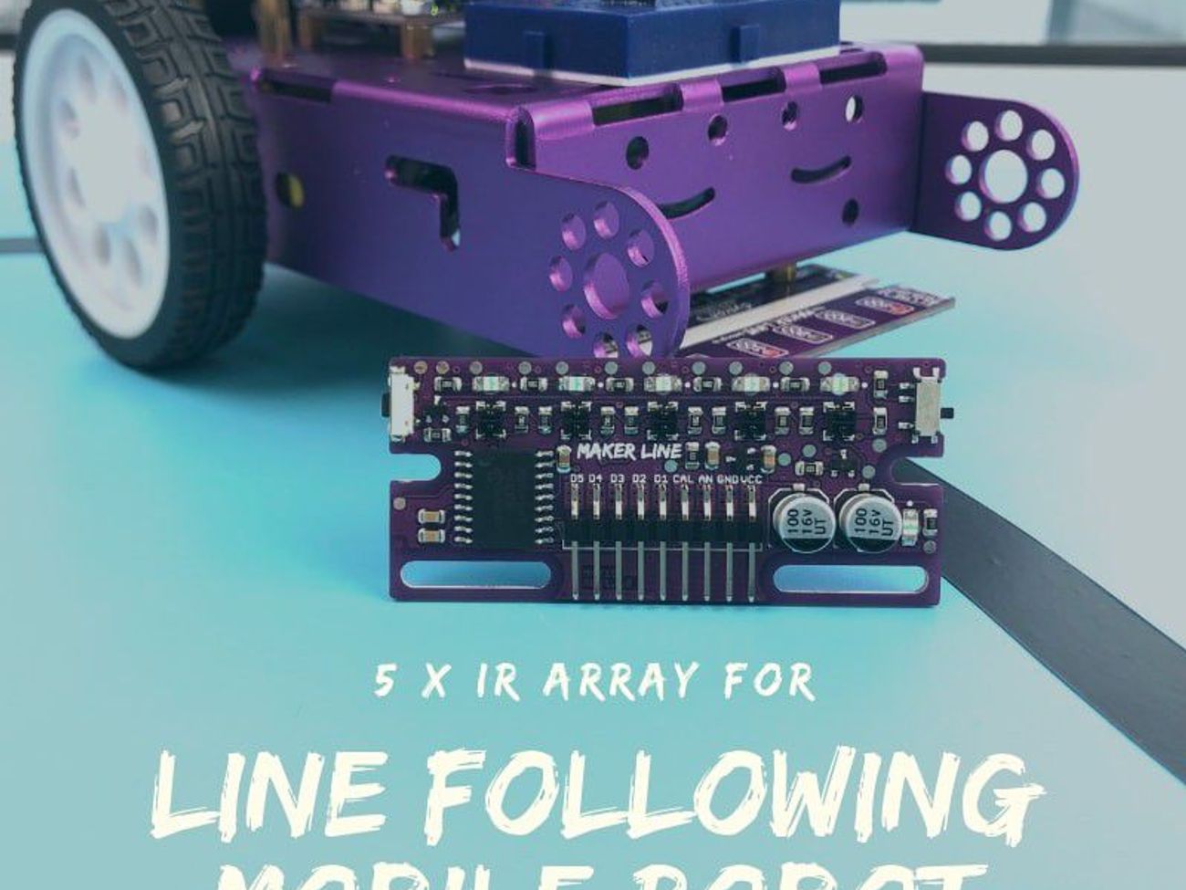 The module provides 5 independent digital outputs for direct sensor state reading, plus 1 analog output that represents line position for smoother and more accurate control. This analog output is especially useful in line following robots that use PID control, where higher position resolution can improve steering response.