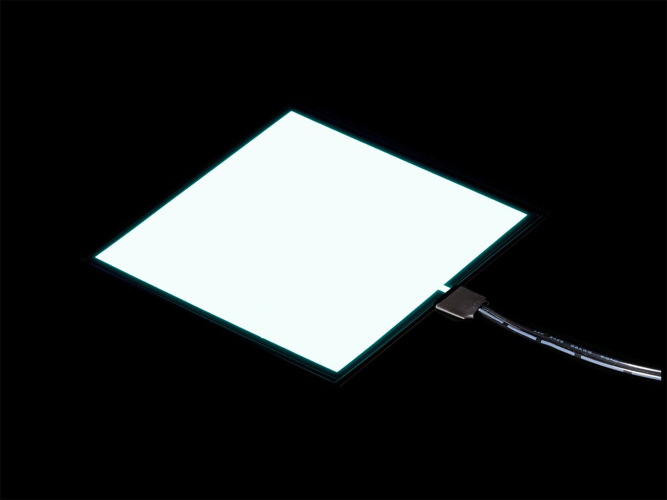 Bring vibrant glow and futuristic style to your next project with this Electroluminescent (EL) Panel powered by a 2xAA pocket inverter box. Thin, flexible, and lightweight, this panel emits a uniform neon-like light that’s perfect for costumes, signage, backlighting, or DIY lighting effects.