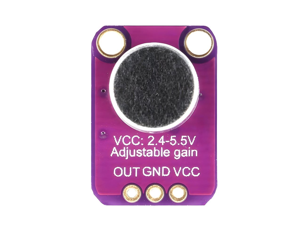 The GY-MAX4466 Microphone Module is a low-noise analog microphone breakout board designed for sound detection and audio recording applications. It operates within a voltage range of +2.4V to +5.5V, making it compatible with a wide range of microcontrollers and development boards. The module features an impressive Power Supply Rejection Ratio (PSRR) of 112dB and a Common-Mode Rejection Ratio (CMRR) of 126dB, ensuring clean and stable audio output even in noisy environments.