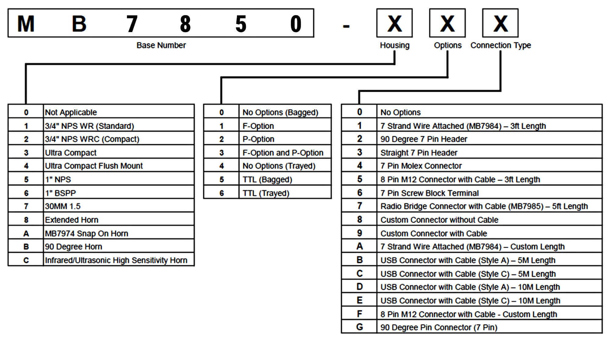Technical specification for MaxBotix MB7850 Ultrasonic TankSensor.