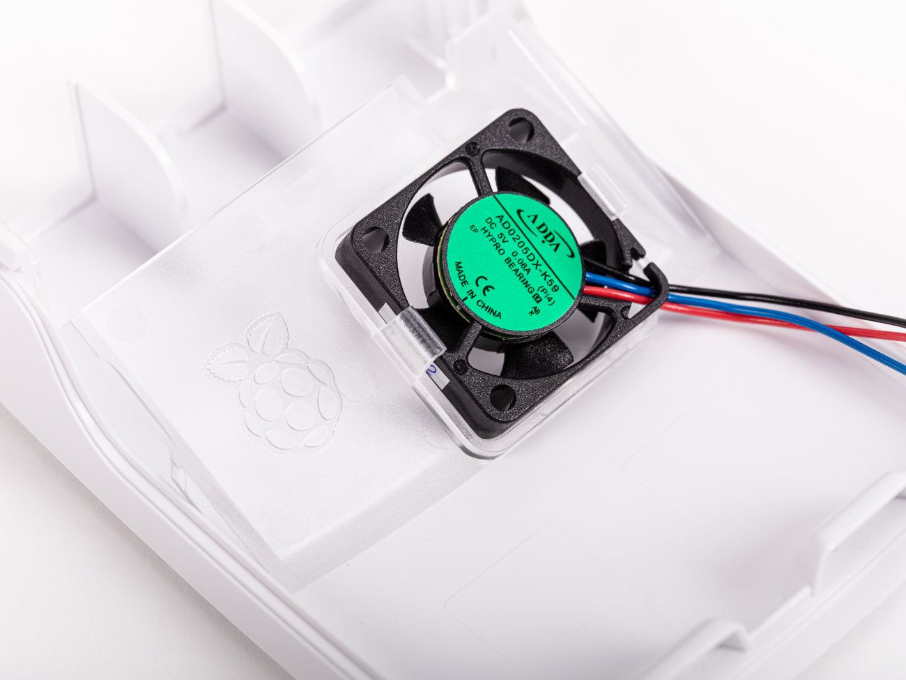 Case fan perfectly fits into the Raspberry Pi 4 Case Lid.