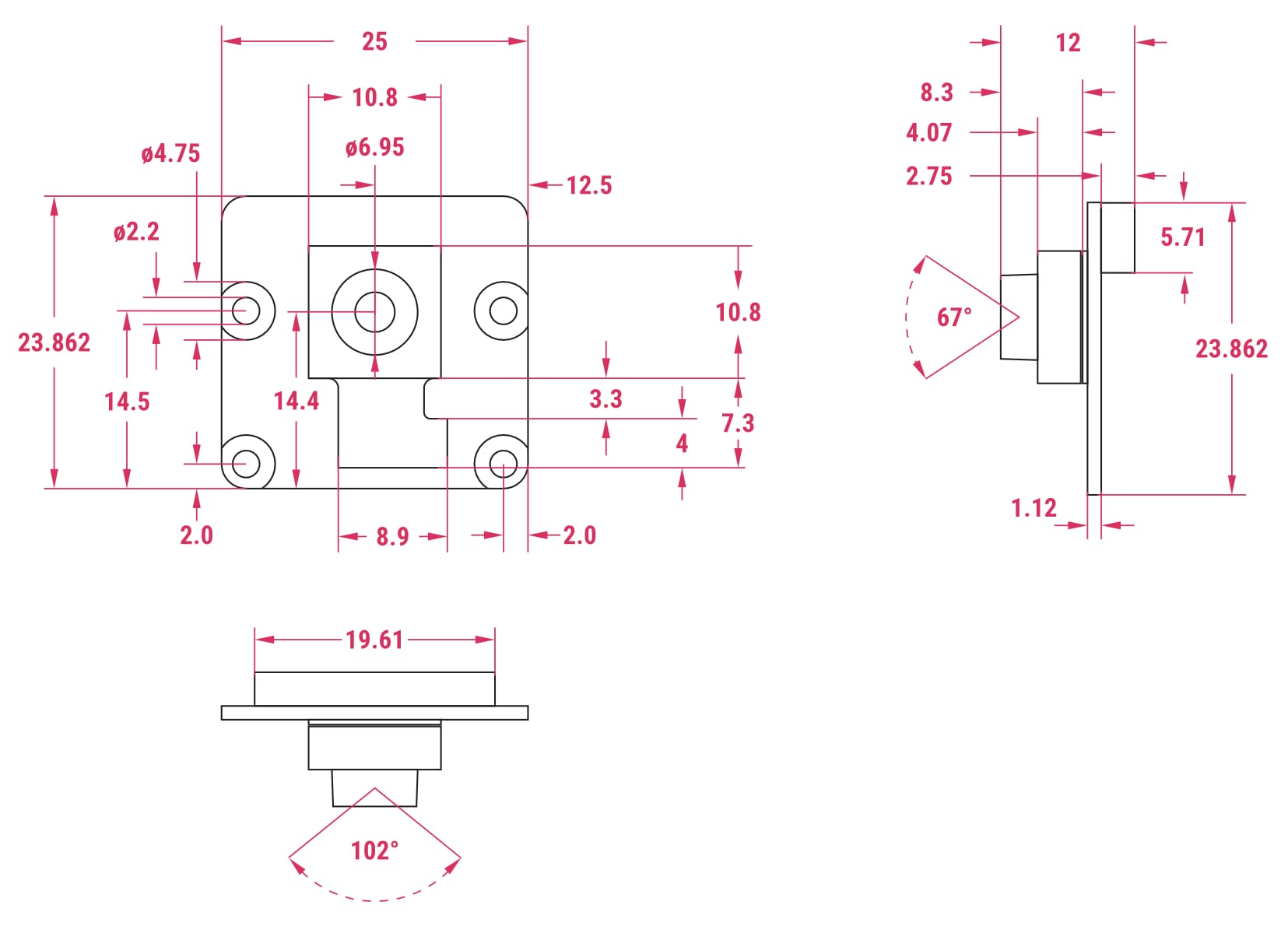 Mechanical Drawing for Standard Raspberry Pi Camera Module 3