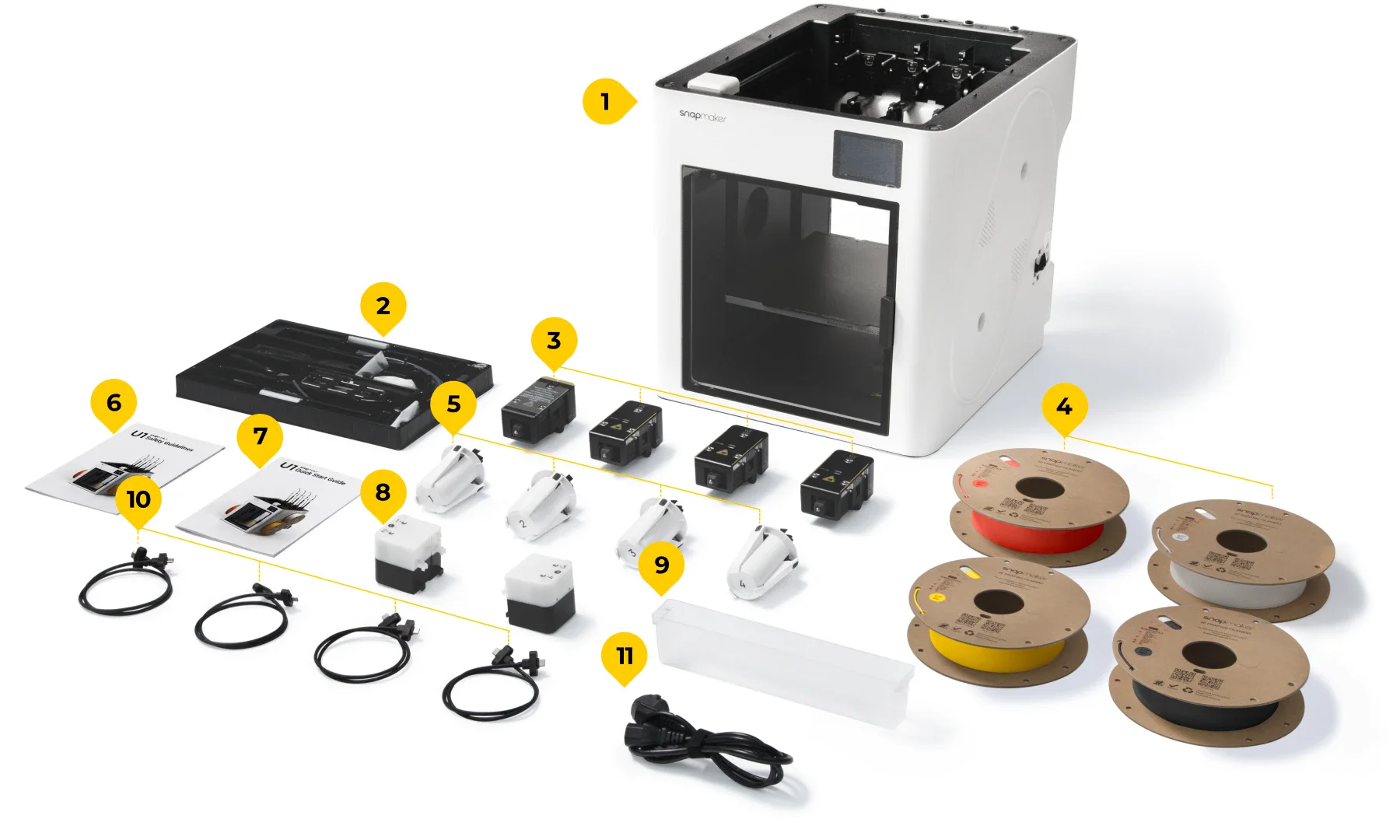 Items included with the Snapmaker U1 Multi-Material 3D Printer