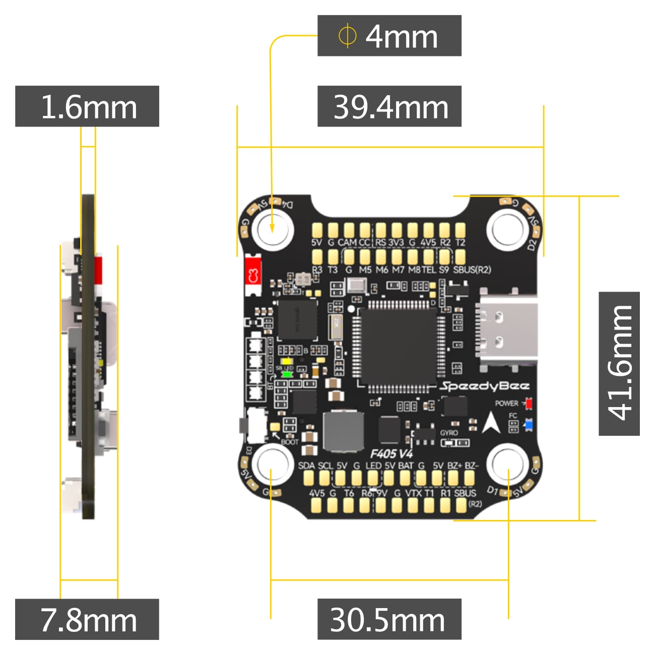 Technical specifications for SpeedyBee F405 V4 Flight Controller.
