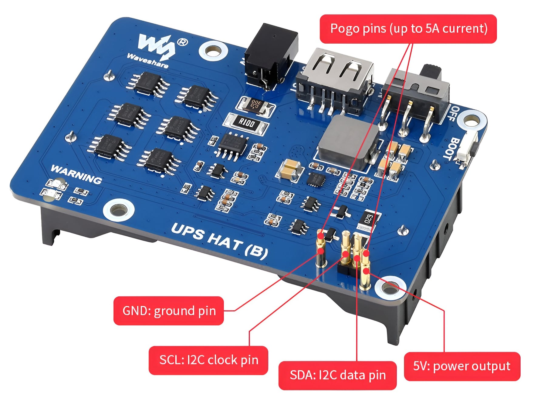 The UPS HAT compact form factor fits and connects seamlessly from the bottom base of the Raspberry Pi using the pogo pins. If your ever need a reliable power backup solution, the UPS Base HAT (B) is a robust accessory that safeguards your Raspberry Pi while extending its uptime.