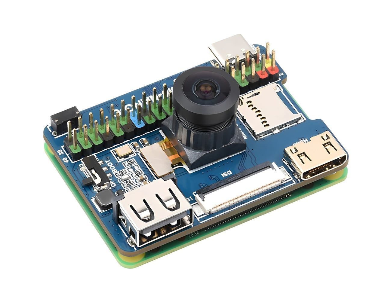 Equipped with essential interfaces, the board features a 40-pin GPIO header compatible with Raspberry Pi modules. A USB 2.0 Type-A port provides connectivity for peripherals like keyboards, mice, and storage devices. Also, it includes a 15-pin MIPI DSI display port for connecting compatible displays and a mini HDMI port capable of supporting 4K 30fps video output.