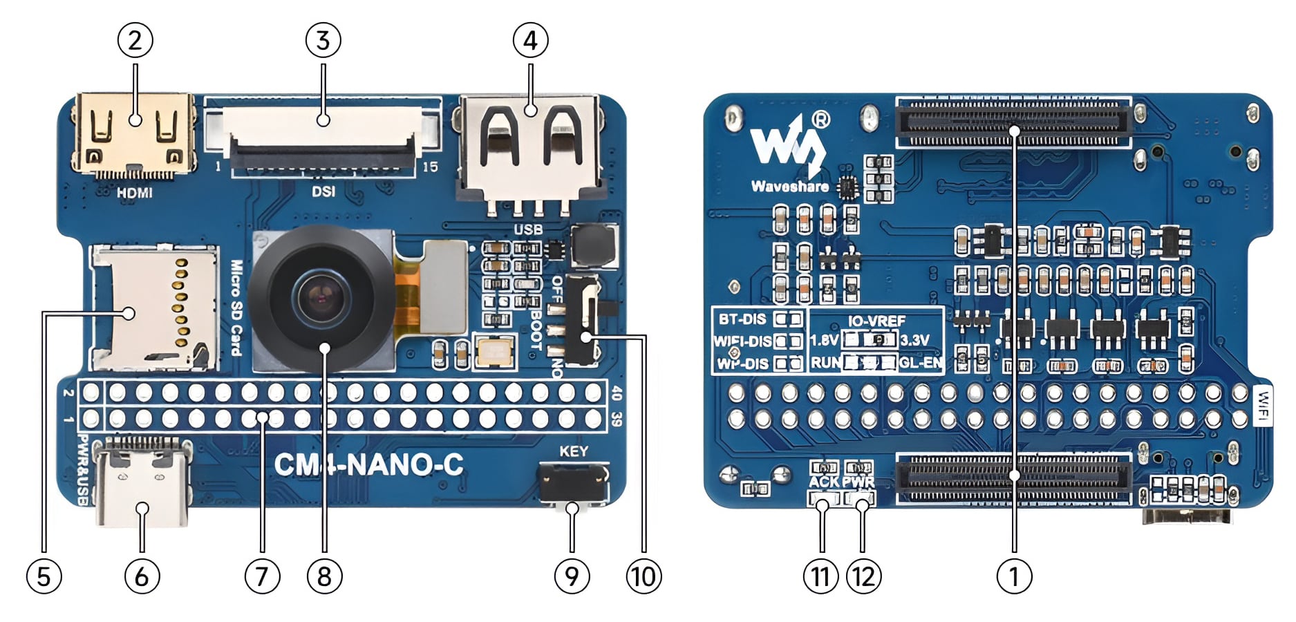 | 12 | PWR LED | CM4 power status LED |