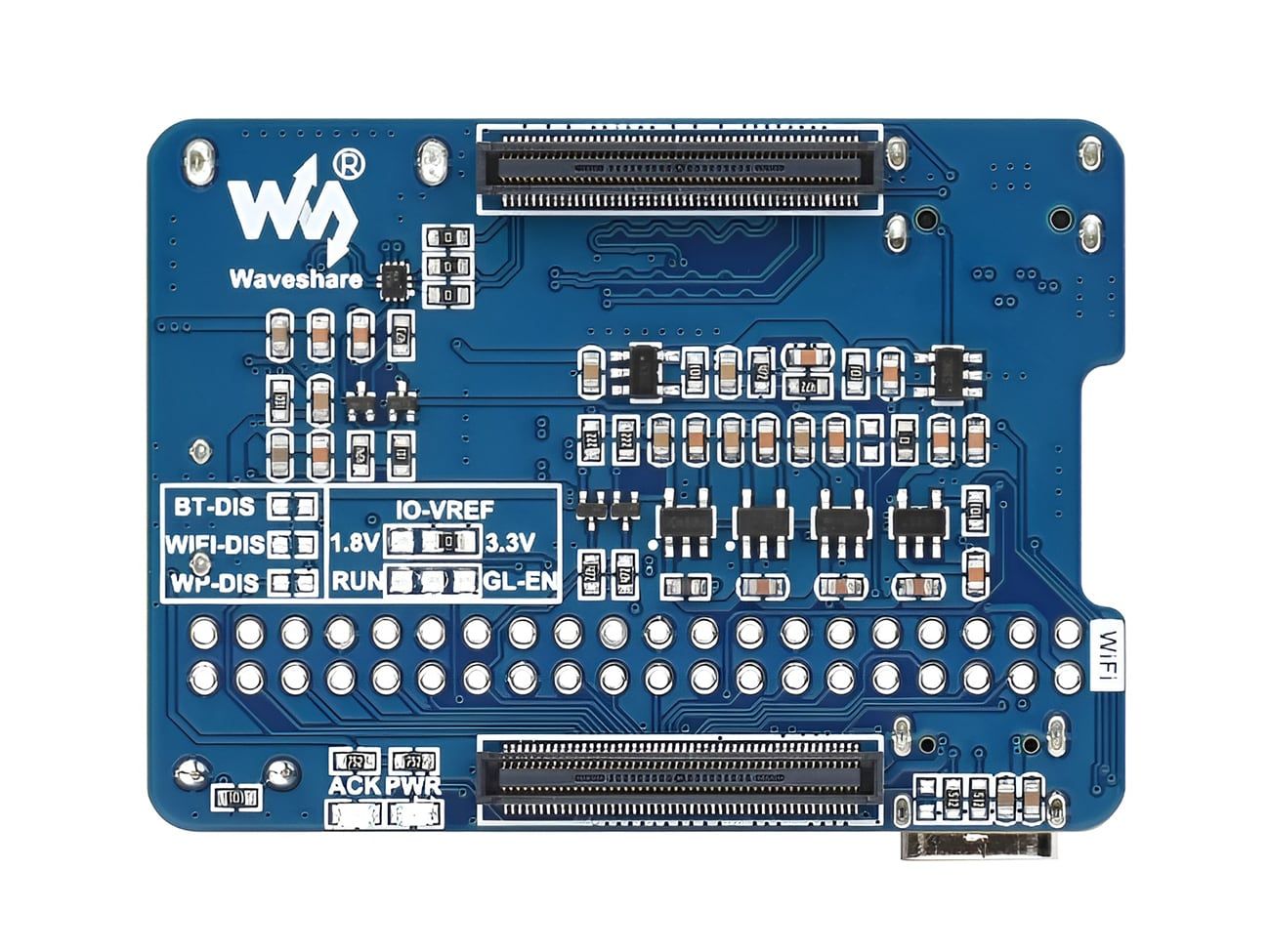 The Waveshare Nano Base Board (C) is a compact carrier board, technically a compact sized IO board designed for the Raspberry Pi Compute Module 4 (CM4) with dimensions matching the CM4 (55mm x 40mm) boards.