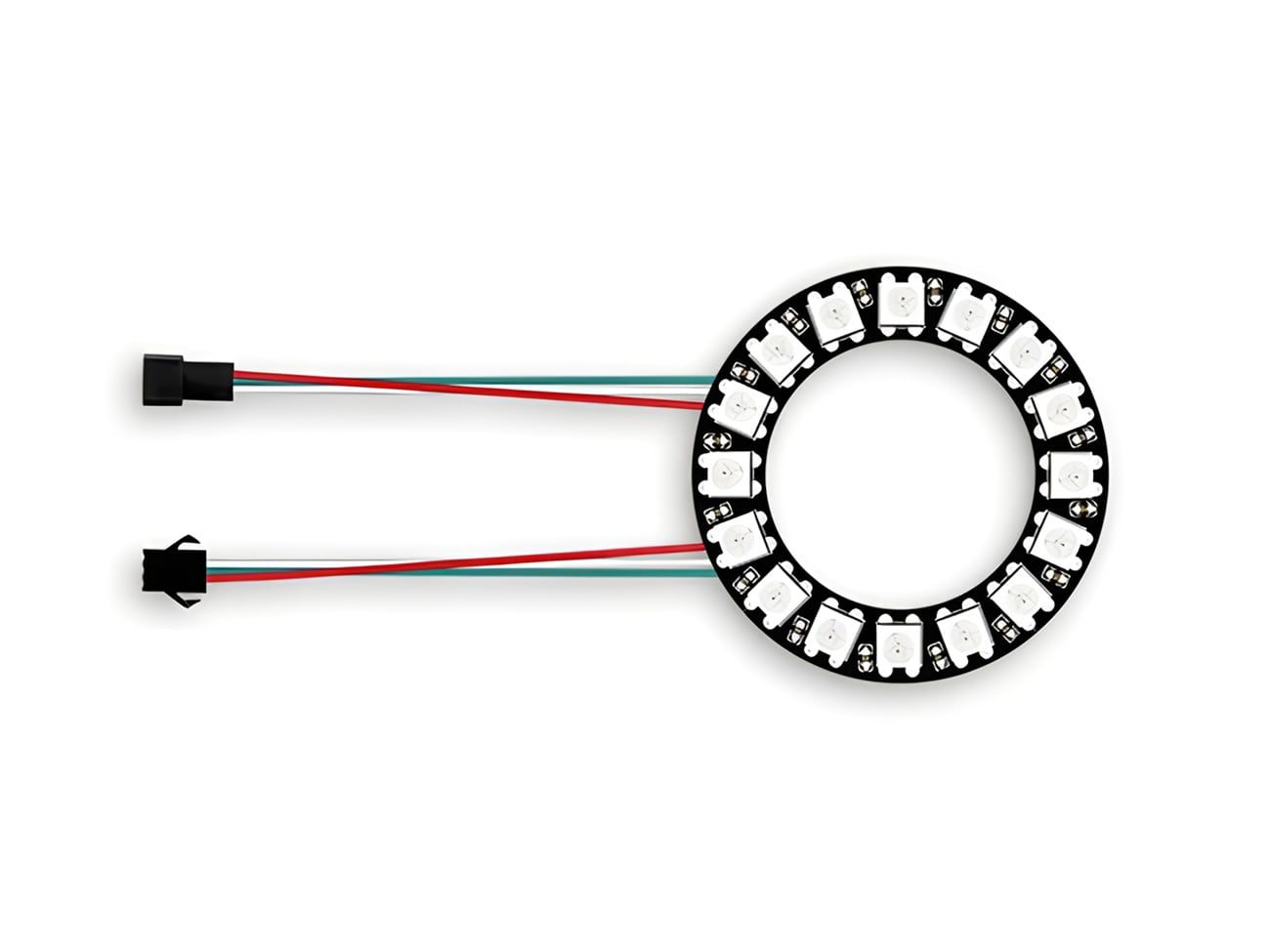 The WS2812 LED ring features 5050 RGB LEDs with a built-in WS2812B driver IC, making it an excellent for creating vibrant and customizable lighting effects. Each LED is individually addressable, allowing for dynamic patterns and color control with over 16 million color combinations.