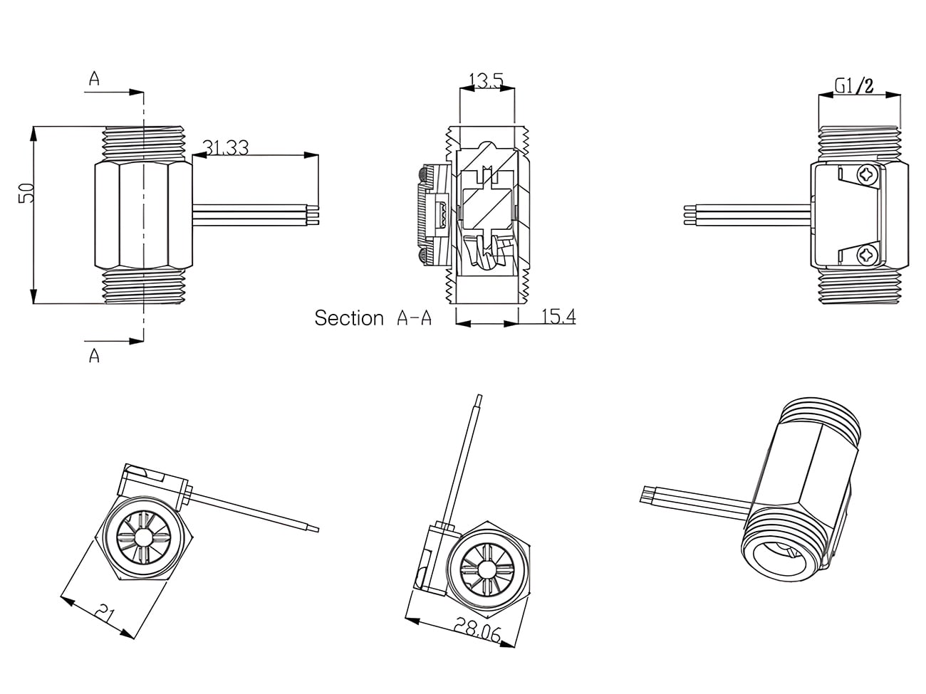 This sensor operates on a wide voltage range of 3.5V to 24V DC, generating a pulse signal proportional to the flow rate. With a measurement range of 1–25 L/min (±3%), it’s ideal for applications like water dispensers, industrial control systems, and smart water monitoring. Its G1/2 thread design ensures easy installation, and the compact 66 mm body allows it to fit into tight spaces.